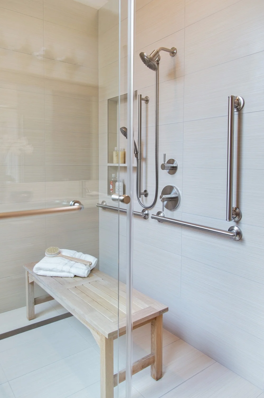 The warm brown and gray look. Bathroom & shower grab rails & grab bars. Moen 90 degree collection, moen home care collection, moen aris, moen iso collection, moen kingsley collection, moen securemount collection. Grab bar stainless 16 grab bar. Bathroom designed for safety, ease of use while sitting, and beauty with curbless shower and grab bars. Grab bar is a nationally registered trademark and well recognized throughout the country. Strong, secure & stylish grab bars and rails for bathroom or shower. Architectural straight designer grab bar, brushed nickel. These decorative products are safety enhanced bathroom accessories designed for luxurious bathrooms that also happen to be grab bars hidden in plain sight. Concealed this glacier bay 36 in. The grabs bars are further customized to your specific design style with chrome. Simara bath handle with wire soap basket. Confort l shaped safety support, right hand.